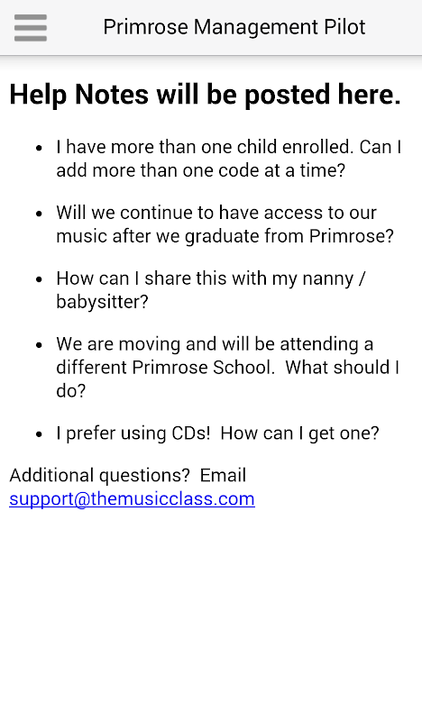 This App is a companion tool for parents and students of Primrose Schools. Registered users can use the App to play music CDs included in their Rhythm & Notes® with music from The Music Class® curriculum.