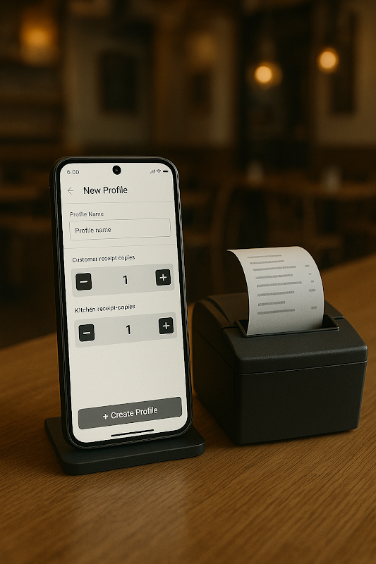 - 可自訂的收據:設定收據尺寸、格式和份數以適合您的工作流程。