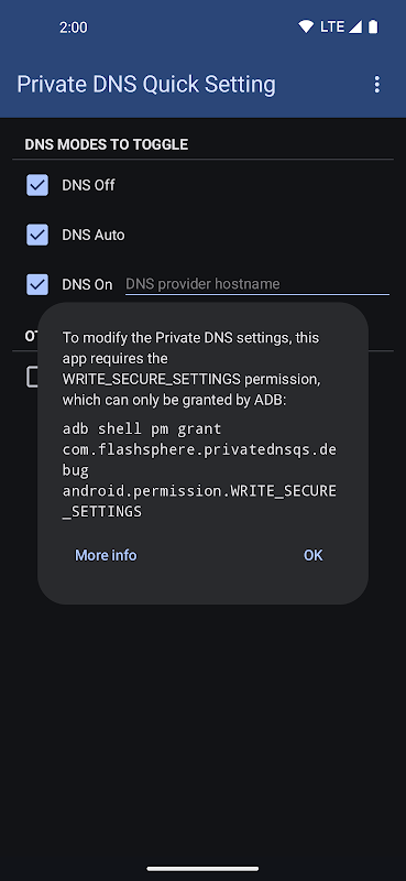 adb shell pm grant com.flashsphere.privatednsqs android.permission.WRITE_SECURE_SETTINGS