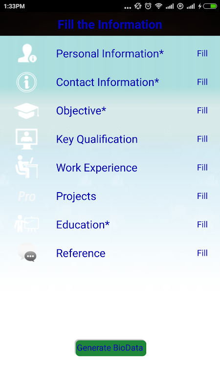 Professional BioData Maker is the easiest tool to create your Resume with creative styles, just in a short period of time. You can save your resumes as PDF format and then you can share these resume using bluetooth, email, whatsapp or any other social sharing platform.