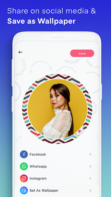 Tap-Tap:您只需在屏幕上輕點幾下,即可讓您的 DP 擁有迷人的外觀。 Propecia 為您的個人資料圖片提供了大量漂亮的相框。允許您以圓形和許多其他形狀編輯您的照片,而不是設置為您的個人資料圖片或顯示圖片。
