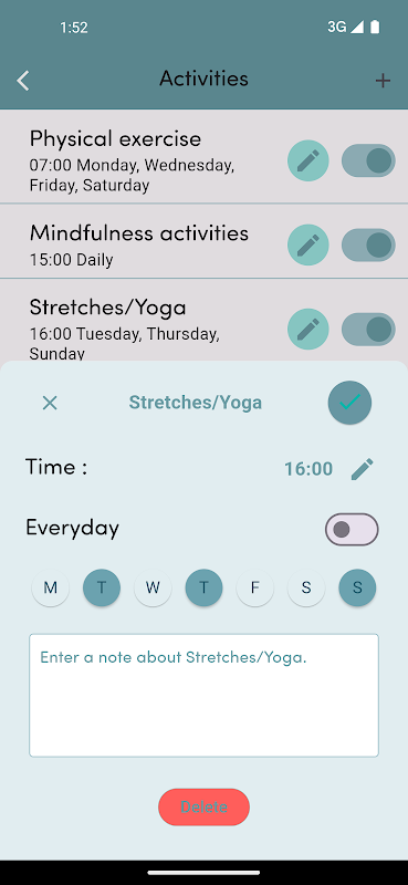 建立習慣對於支持心理健康、提供穩定性、可預測性和控制感至關重要,有助於減輕壓力和整體情緒恢復能力。 Profmed WellBeing 讓您可以安排運動、藥物、家庭時間和其他活動的提醒,幫助您堅持日常生活。
