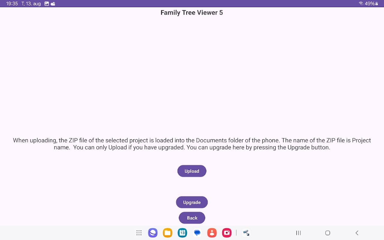 為了上傳您需要升級的項目,需要付費。若要升級,請按下項目視窗中的「上傳項目」按鈕。然後“項目上傳”視窗將為您打開。有兩個按鈕“上傳”和“升級”。您可以按升級按鈕升級版本。然後,如果您想上傳項目,請按「上傳」按鈕。該項目打包在 ZIP 檔案中並保存在手機的 Documents 資料夾中。 ZIP 檔案將被命名為項目名稱。
