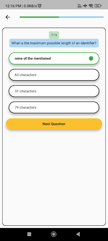 Programming Quiz App 旨在讓學習編碼變得有趣和互動,同時測試每種語言的基本概念知識。它允許用戶使用涵蓋變量、字符串、數組等主題的多選題來練習他們的技能——所有這些都是專門為所研究的每種語言量身定制的。這有助於確保用戶能夠在進一步進入更高級別的代碼編寫或開發項目之前掌握關鍵概念。
