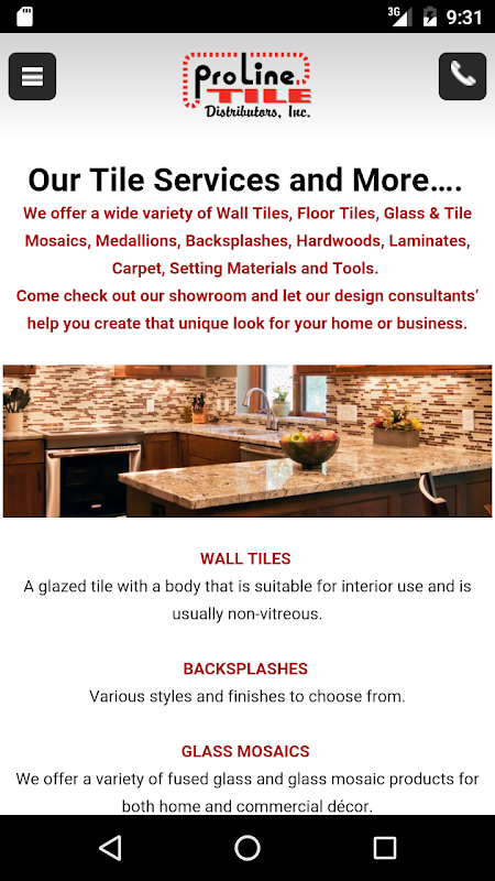 Built upon the amazing 'My Custom Business App' from All Web-n-Mobile LLC. The MCBA theme was customized by and is the copyright of ProLine Tile. The ownership and intellectual property rights are the property of All Web n Mobile LLC. The inclusion of 'PromoBlast' or 'ProxiBlast' may or may not be included.