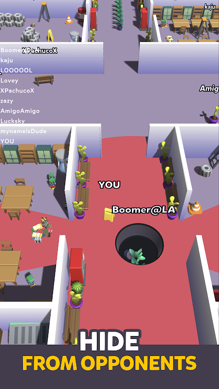 在這款驚心動魄的手機遊戲中,你和你的朋友將輪流變身為道具或洞,互相挑戰尋找或隱藏對手。每一輪遊戲玩法都會發生變化,確保無盡的興奮和驚喜。