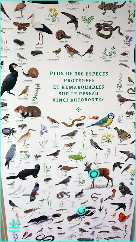 在我們的休息區找到我們的VINCIAutoroutesBiodiversité海報之一,以便使用該應用程序。