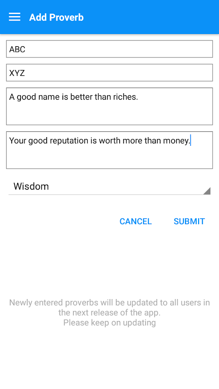 這個程序包含勵志,睿智,幽默的諺語和俗語與意義的集合。