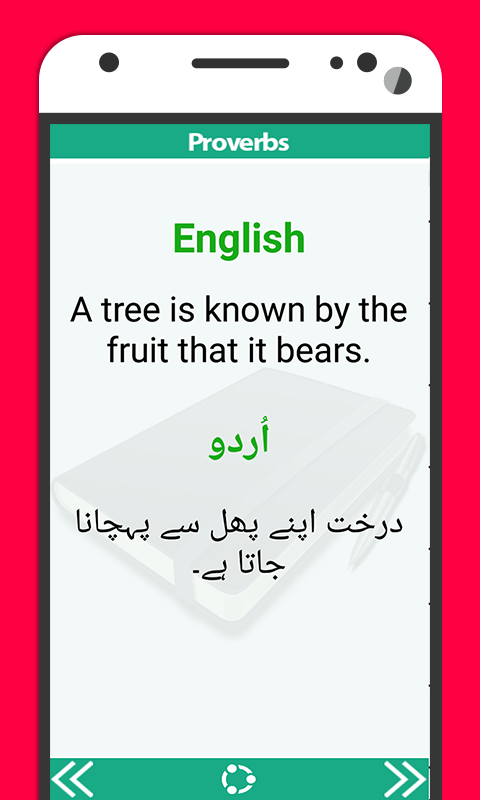 這個諺語詞典應用程序最適合中級和中高級的水平。這個程序包含最有名的和已知的英語諺語,包括與他們一起的含義。諺語和格言是傳輸代代相傳,並已通過普遍使用的智慧或建議簡短的發言。諺語和俗語表達一個基本的事實或實際戒,基於常識和文化體驗。在英語和烏爾都語語言最常用的諺語的列表。它包含A到Z英語諺語與他們的烏爾都語翻譯和烏爾都語也有諺語英語語言的含義。諺語,將讓你的方式表達的綜合目錄,這將讓別人留下深刻的印象。可以在白天使用一天的談話,一本書,一個新聞報導等?我們預計它會離開你的讀者或聽者的知識有很大的影響。它可以下載並不會佔用過多的空間,保存在你的Android智能手機。這個應用程序是免費的,用戶友好的,也可以讓你閱讀烏爾都語特定諺語的含義。這是你可以學習日常使用烏爾都語諺語和他們的英語尤其是對學生誰總是需要這種類型的應用程序意義的雙諺語詞典。我們希望你會認為這是最好的,你的學習和喜歡的應用之一。