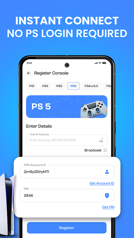 • 簡單且安全的設定:使用您的 PSN 帳戶 ID 快速連線到您的主機,無需輸入密碼。