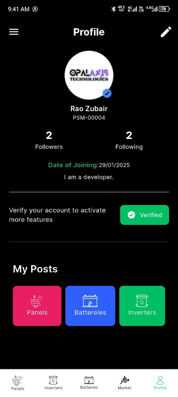 註冊用戶可以訪問個人化儀表板,在那裡他們可以管理他們的帖子並查看他們的詳細資訊。此外,PSM還提供會員卡系統,允許用戶建立並註冊其個人資料以進行驗證,確保所有會員都是太陽能市場的合法參與者。