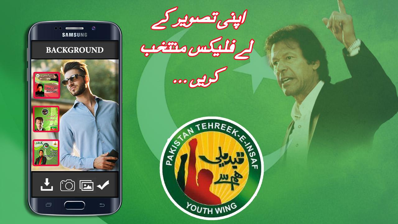 Make your beautiful flex at home very easily with your photo and name with PTI salogan, PTI bagdes, PTI sticker and PTI photo frames. You can also write your on salogan with amazing urdu and english keyboard and share your photo with friends.