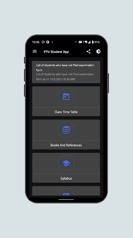 PTU 教學大綱應用程序,用於檢查問題論文、PTU 結果、通知、書籍、日期表