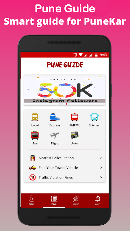浦那的第一個一體化應用程序:獲得浦那本地火車,PMPML巴士,MSRTC,Shivneri巴士,快車列車時間和時間表,汽車,航班,交通規則和罰款,工作,納塔克斯,新聞,電影,節日,警報,緊急聯繫電話,野餐場所,學院名單,浦那市周圍的街頭美食為Punekar和PCMCkar人民。
