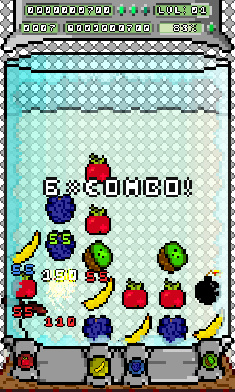 ...and that is all there is to it! No weird power-ups. No strange men offering weaponry. No crazy creatures with big, wobbly eyes and small pointy teeth. Just you and your mad finger sliding skills! And froots. And bombs.