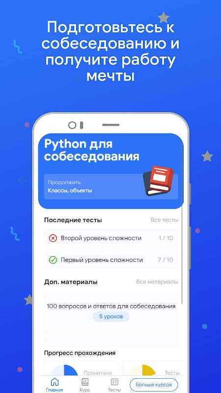 Статьи и тесты с разным уровнем сложности помогут быстро освоить все самое необходимое и успешно пройти собеседование на Python разработчика и получить желаемую должность.