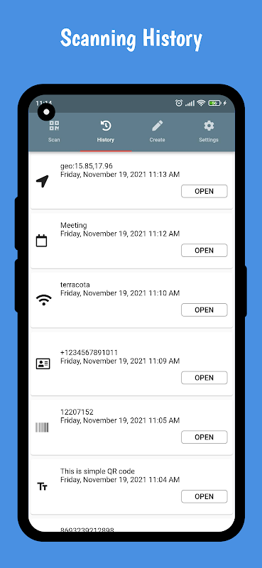 您掃描的所有代碼都由系統存儲。您可以隨時訪問過去的掃描。您可以將不想要的舊記錄一一刪除,也可以從設置頁面清除整個歷史記錄。