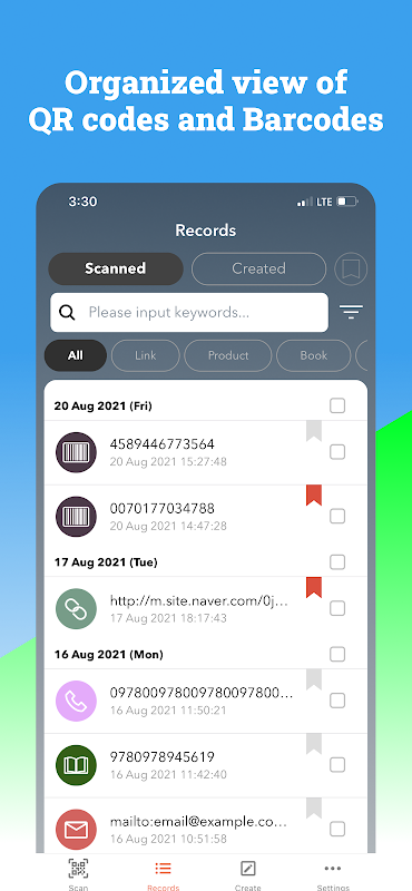 您可以管理所有掃描記錄和新二維碼的無限歷史記錄。