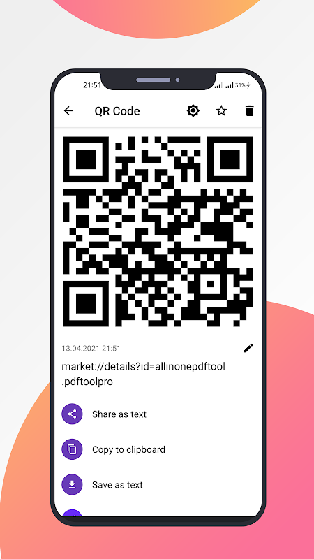 Features in QR code creator app: