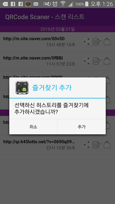 (QR 코드를 보관함과 즐겨찾기에 저장이 가능합니다.)