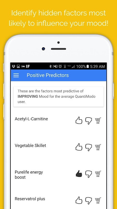 - Easily track mood, symptoms, or any outcome you want to optimize in a fraction of a second