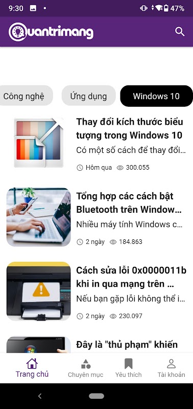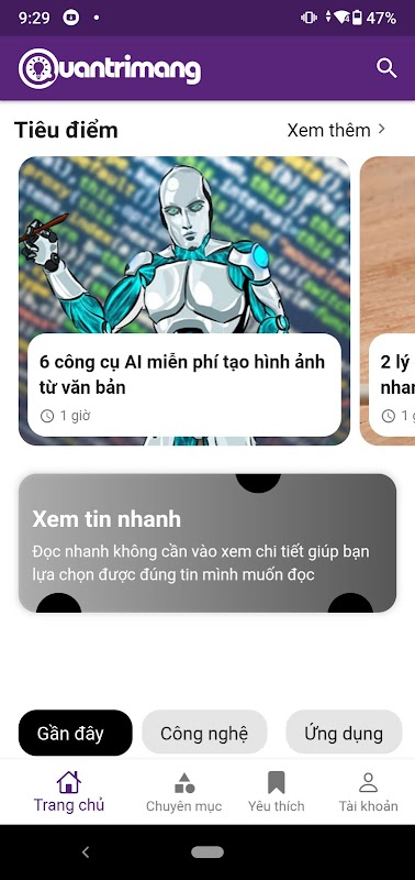 使用 QuanTriMang.com 應用程序,您可以輕鬆地更新與信息技術相關的信息和知識,特別是一般和詳細類別。