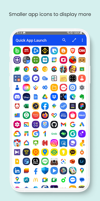 與典型的啟動器應用程序不同,它顯示更小的應用程序圖標以在屏幕上顯示更多應用程序圖標,讓您一眼就能快速找到並啟動應用程序。您還可以輕鬆調整應用程序圖標的大小,使它們顯得更大或更小。此外,關鍵字搜索功能可幫助您更快地找到所需的應用程序。