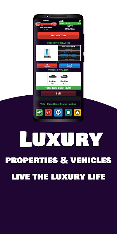 玩家每周有80個小時。如何管理這些時間來賺錢是挑戰。因此,明智地利用您的時間,否則您將破產。就像在現實生活中一樣,您必須照顧自己的健康,健康,幸福,外表和智商等統計數據。您在此模擬器中執行的幾乎所有操作都會影響這些統計數據,而這些統計數據會影響生活質量