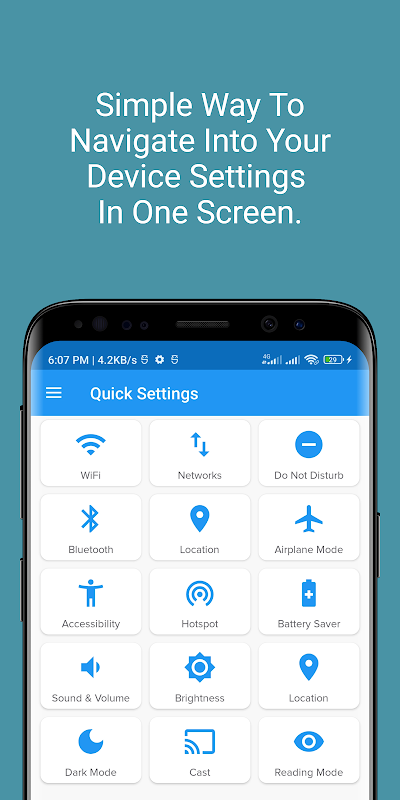 Quick Settings for Android App saves your time by providing you useful and straightforward access to navigate your device settings.