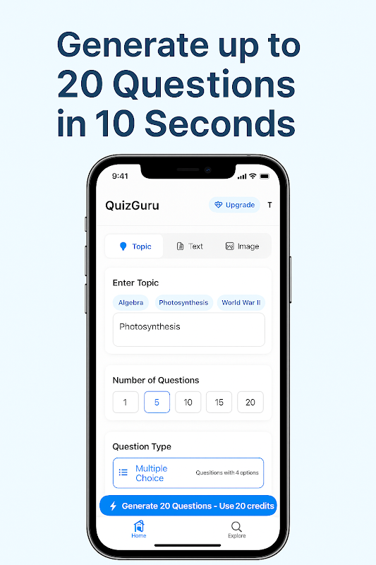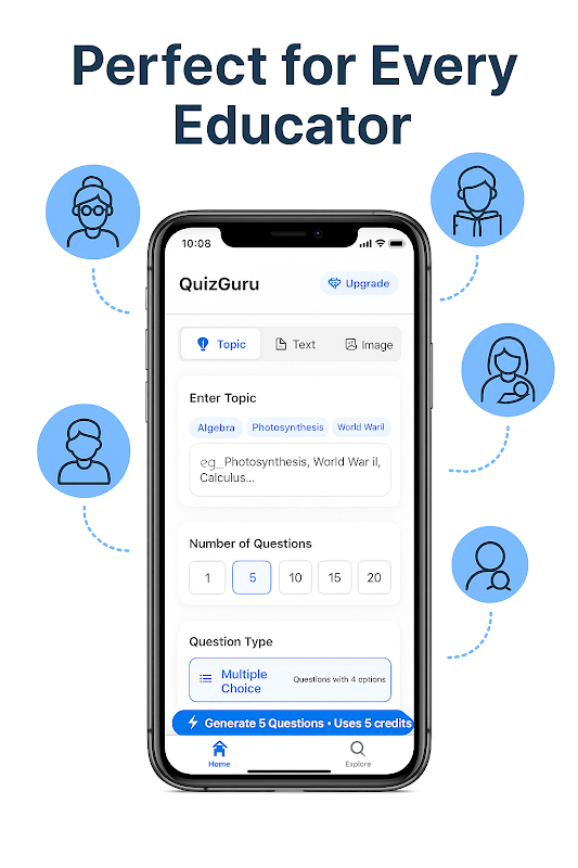 QuizGuru.ai 是一款終極 AI 工具,可從任何文字、圖像或章節名稱產生高品質的測驗主題和試卷。無論您是教師、家長、導師還是學校,創建個人化學習材料從未如此簡單。