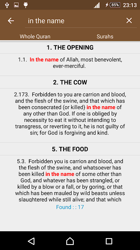 The second part is in writting mode. There are 14 languages of whole quran. You can read it, search any word from all quran, store any Ayah to favorites and share it with your friends.