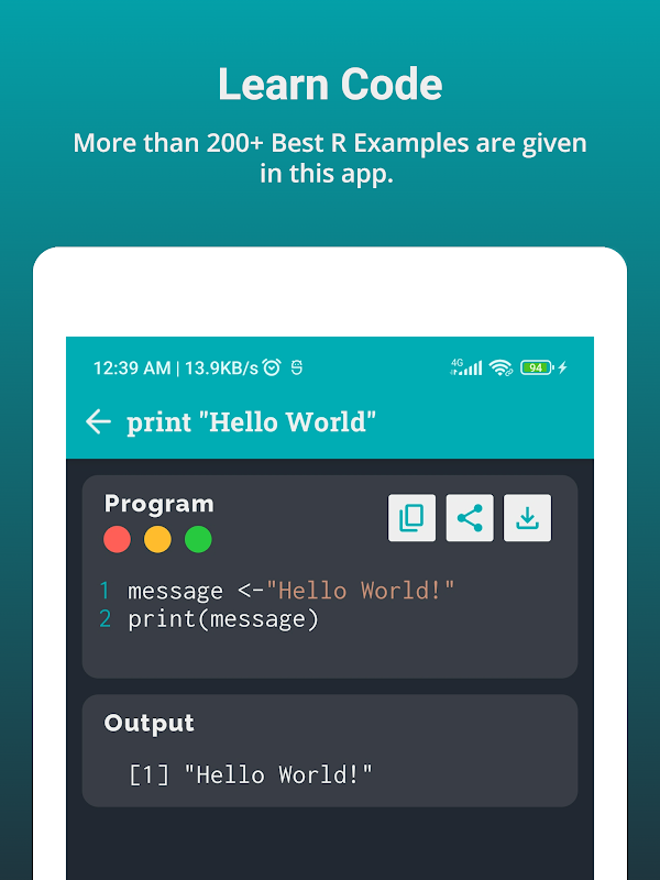 通過練習學習R編程語言是在短時間內學習編程的簡單方法。在此應用程序中,每個主題都包含自己的示例,並具有獨特的輸出。