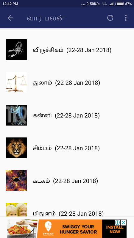 Daily Raasi Palan gives you various astrology updates for all the twelve raasi's and with below features in Tamil with mantras/slogams and many more.