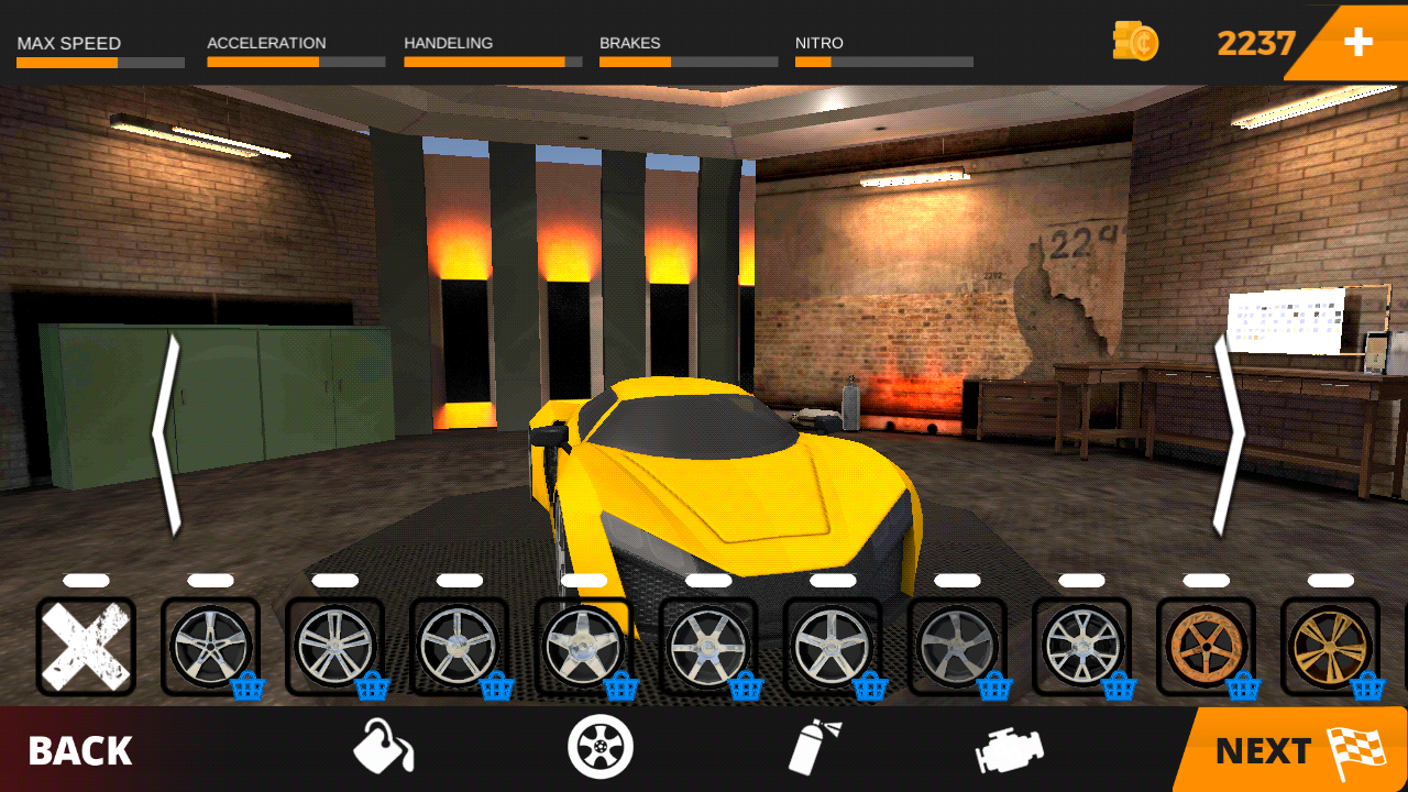 In our car garage, you can improve the performance of your race car:
