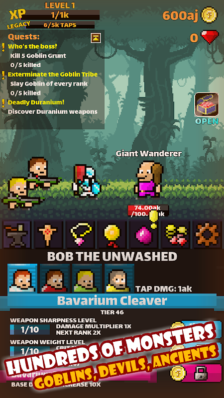 Idle and fight hundreds of monsters, from puny goblins to huge rulers of the deep!