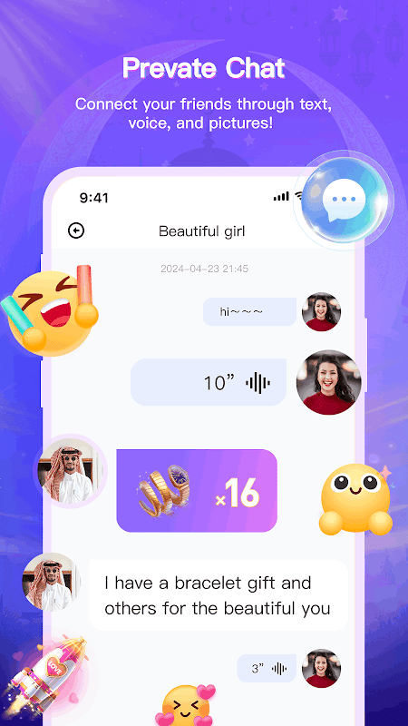 精美禮物和動圖:在聊天室與朋友交換具有驚人動畫效果的酷炫禮物,以表達您的謝意。