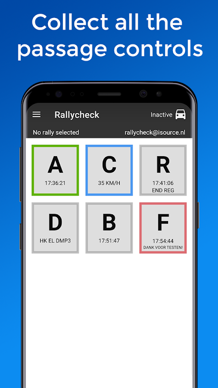 使用Rallycheck你永遠不會錯過任何一個控件。所有記錄的通道控制都以數字方式保存,這使得拉力賽組織者能夠及時,正確地計算結果。