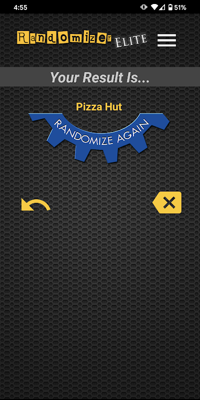 步驟3)只需搖動手機或按大的“隨機化!”即可。按鈕以接收您的結果!