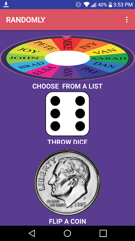 從列表中選擇一個隨機項目,擲兩個骰子或擲硬幣。