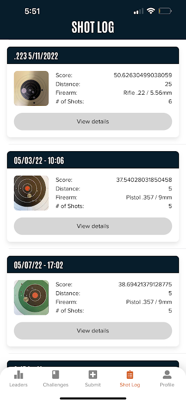 *通過選擇與目標的距離、口徑和射擊次數來為目標評分。然後將四分之一放在目標上並為目標拍照。圖片必須顯示靶心、子彈衝擊和四分之一。拍照後,應用程序將自動計算您與靶心、MOA 和分組的距離。您的分數將上傳到您的拍攝日誌。