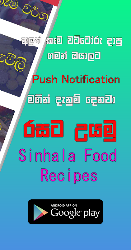 ♨විදේශ කෑම වර්ග හා වෙනත් කෑම වර්ග මෙහි අන්තර් ගත වෙනවා.ඇප් එකට දිනපතාම රෙසිපි ඇතුලත් කරනු ලබන වා。