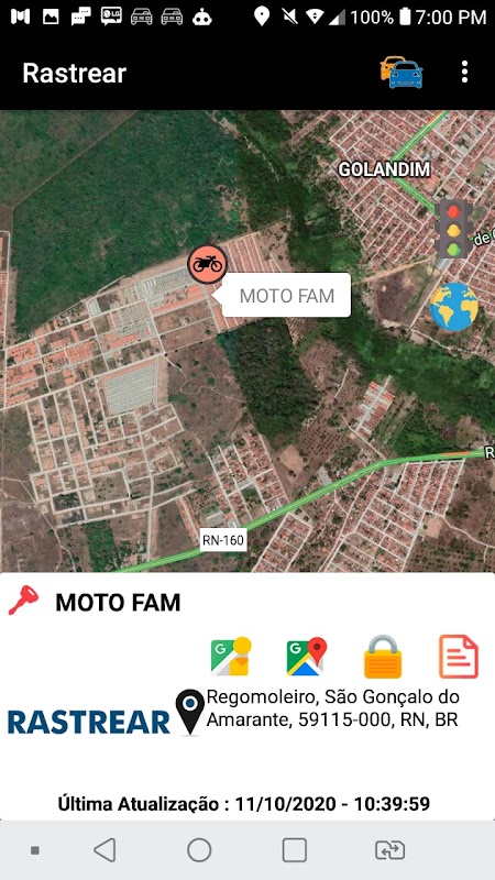 - Visualize de forma rápida e prática, a posição do seu veículo em tempo real no mapa.