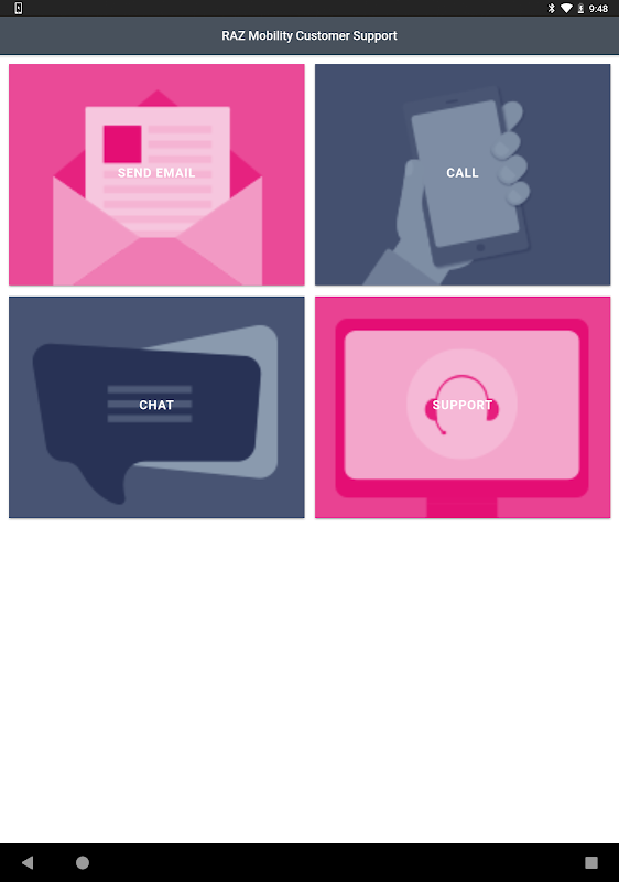 RAZ Mobility支持應用程序允許用戶輕鬆地聯繫客戶支持。