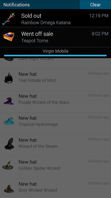 Shows notifications when virtual items are released on Roblox. The app must be opened before you will start receiving notifications.