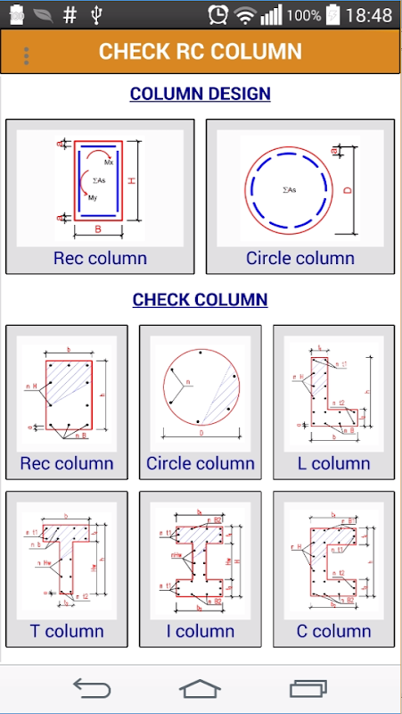 The software calculates the bearing capacity of reinforced concrete column according to 4 criteria: Vietnam, AIC318, Eurocode, china. Computing Software on such diverse cross-section column column rectangular, circular columns, the column letters I, T, C, L ... You can enter the number and location of any steel bars. Calculation checks bearing capacity vertical and torque according to the respective
