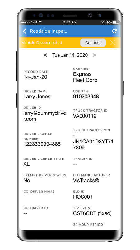 Ready Fleet ELD設備會自動跟踪和記錄行駛時間,易於使用以設置駕駛員狀態,並允許您按日或週查看剩餘的行駛時間。所有數據記錄都安全地存儲在您的智能手機或平板電腦上,並且在需要時可以輕鬆地檢索記錄。