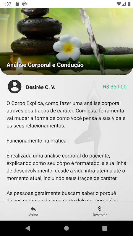 - A reserva do serviço escolhido é realizada pelo app.
