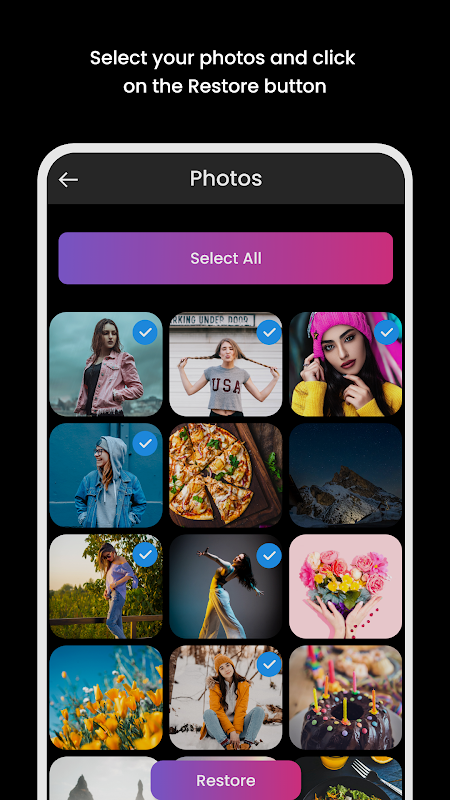 An application to recover deleted photos, Videos, Audios, Application & Contacts from your phone storage or from external storage, and restore them to your gallery.