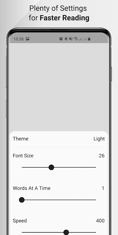 Our technology lets you burn through all those books and articles that have been piling up by making speed reading easy even for someone with no training. The average adult reading speed is 250 wpm. With Focus app, you could double or even triple that speed after just a little bit of practice. Each word appears in the same place on the screen, your eye can stay fixed on that point while words flip through more quickly than you could hunt them down on a page. Indeed, using the application gives a strong impression that you can read very quickly.