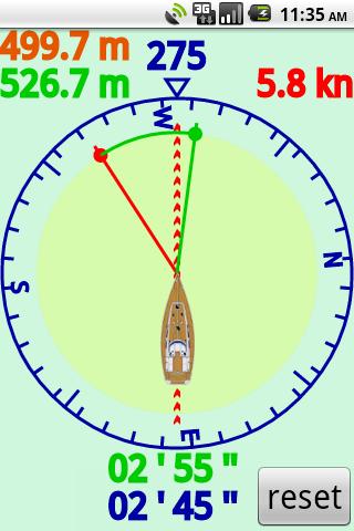 Regatta Tactic Compass displays the relevant information that helps you to optimize the sailing route to the target waypoint.